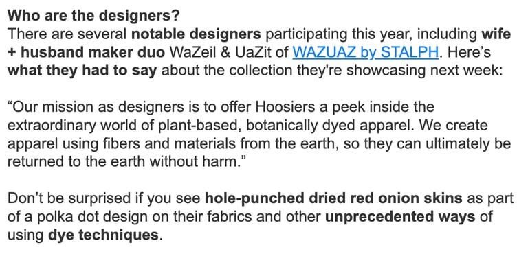 "Indiana Fashion Week: Husband and wife create handmade, sustainable clothes"